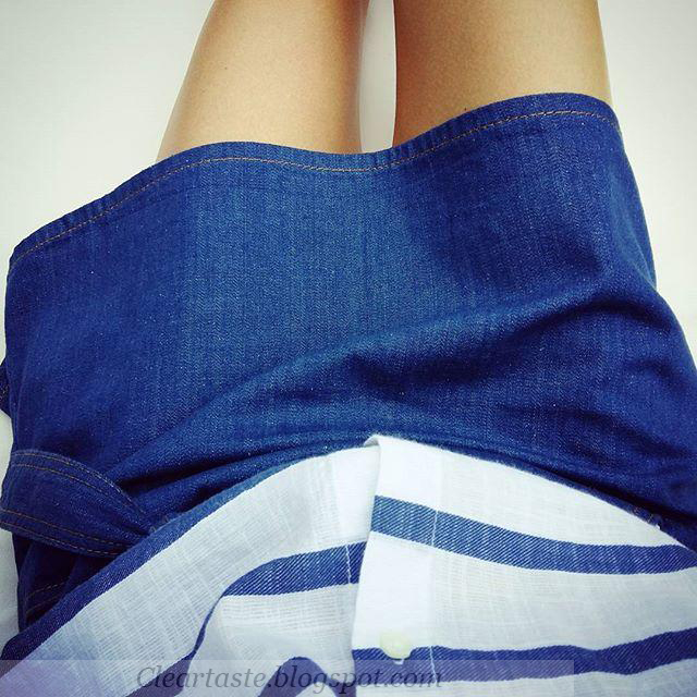 W ostatnim czasie polubiłam bluzki - koszule odkrywające ramiona. W połączeniu z jeansowym dołem tworzą fajny letni zestaw. Dodatki, czyli sandałki i zegarek w kolorze karmelowym oraz czerwona torebka urozmaicają ten prosty zestaw.